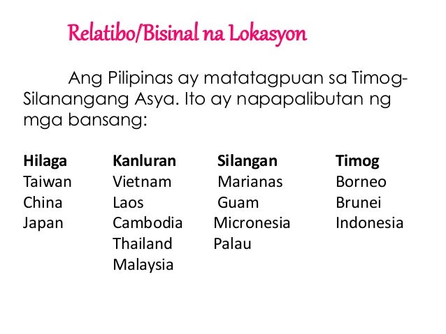 Tinatayang nagsimula ito noong panahon ng yelo may 18 milyong taon na ang nakalilipas. Relations were formally established in August 19571 The Philippines. By AJAA- I-diamond LNHSTeoryang tulay na lupaMay mga tulay na lupang nag-uugnay sa Pilipinas at sa mga karatig-bansa nito ayon kay Propesor H.