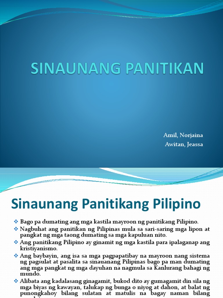 Awitan Jeassa Sinaunang Panitikang Pilipino Bago pa dumating ang mga kastila mayroon ng panitikang Pilipino. 2102020 SINAUNANG PANITIKAN Sa paksang ito ating tatalakayin kung bakit nga ba mahalaga ang mga sinaunang panitikan at ang mga halimbawa nito. Ano ang magandang bunga o epekto nito sa buhay ng mga tao ngayon maging noon pa man - 756372 johnvaleroso14 johnvaleroso14.